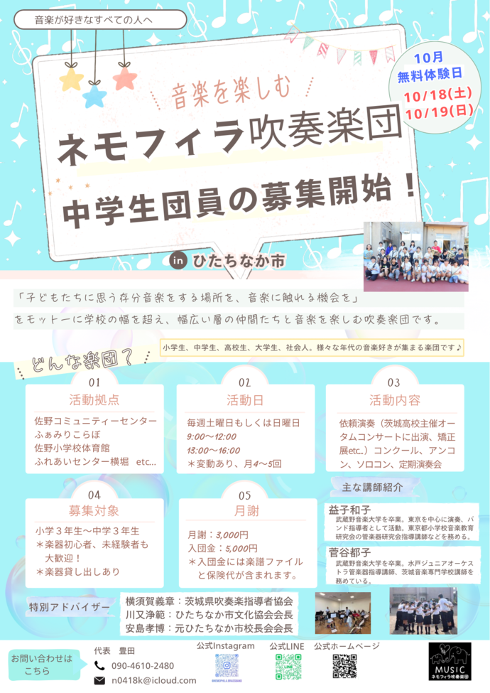 - 2024年度小学生の吹奏楽部の受け皿として活動開始。2025年度より中学3年生まで受け入れ開始。